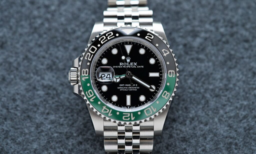 GMTマスターIIで初登場ということで、これまでになかったグリーンとブラックのツートンでデザインされたモデルで、英語圏などではスプライトというあだ名で呼ばれている。