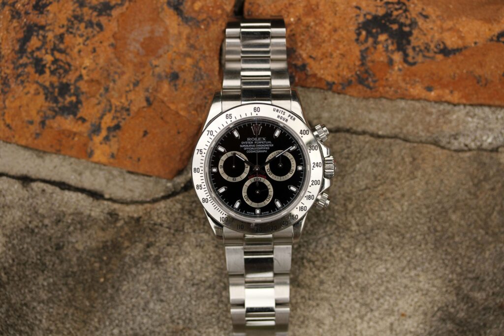 完全自社製ムーブメントを載せた初めてのデイトナがこの世代なのだが、今では希少性も高くかなり高額になっている。