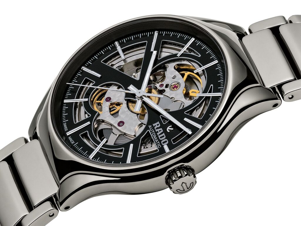 ハイテクセラミックと呼ばれる硬質な素材を使用して作られたモデルで、独特のオープンハートやスケルトンダイヤルは一目でラドーのそれとわかる。