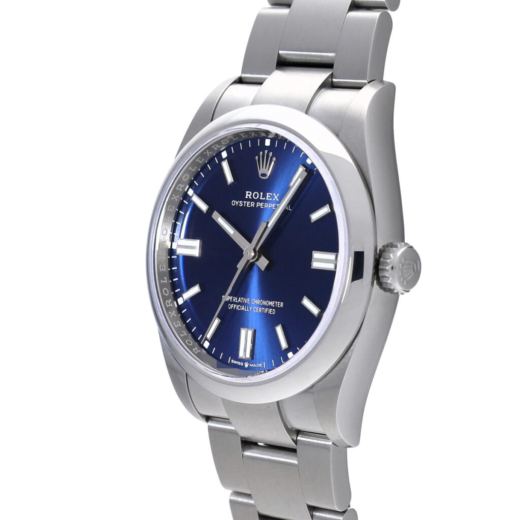 36mmのブルーダイヤルモデルは、ロレックスの伝統を最も色濃く感じさせるサイズとデザインの組み合わせである。過去の名作たちと同じ直径を持ちながら、現代的なムーブメントと仕上げを備え、古さは一切感じさせない。ブルー文字盤は落ち着きと若々しさを併せ持ち、年齢を問わず似合う懐の深さがある。派手な個性はないが、その分、使うほどに信頼感が積み重なっていく。ロレックスらしさを最も自然体で味わえる、完成度の高い一本である。