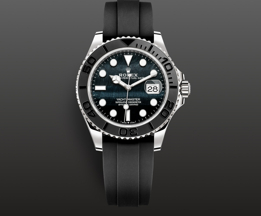 ファルコンズアイ文字盤を備えたヨットマスター42は、スポーツロレックスの中でも特異な色気を放つ存在だ。天然石特有の縞模様は一本一本表情が異なり、まったく同じ個体は存在しない。その個性が、所有する喜びを強くする。ホワイトゴールドケースとブラックのセラクロムベゼルが重厚感を演出しつつ、オイスターフレックスブレスレットによって実用性も確保されている。ラグジュアリーでありながら軽快、力強いのにどこか艶やか。このモデルは、ロレックスが持つ「遊び心の到達点」と言えるだろう。