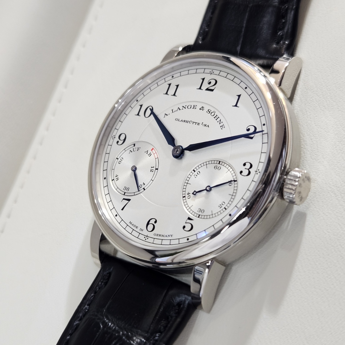 1815シリーズは、A.ランゲ&ゾーネの精神的中核とも言えるコレクションであり、このアップ/ダウンはその中でも特に“機械式時計を所有する意味”を強く意識させてくれるモデルである。文字盤はシルバー無垢に手彫り風のアラビア数字、レイルウェイトラック、スモールセコンド、そしてパワーリザーブ表示。構成要素としては極めてクラシックであり、奇をてらった要素は一切ない。しかし、その配置バランスと情報量の整理が驚くほど美しく、視認性も極めて高い。時間を見る行為そのものが、自然と丁寧になる感覚がある。