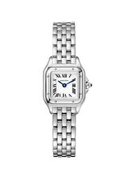 文字盤はカルティエらしいローマンインデックスとレイルウェイミニッツが配され、クラシックでありながら凛とした表情を持つ。ブルースチールの剣型針が、白い文字盤の上で静かに時を刻む様子は、どこか詩的ですらある。ミニサイズであるがゆえに、視認性を犠牲にしているのではないかと思われがちだが、実際には必要十分で、むしろ「時間を意識しすぎない」余白を与えてくれる。この感覚が、パンテールの美学なのだと思う。