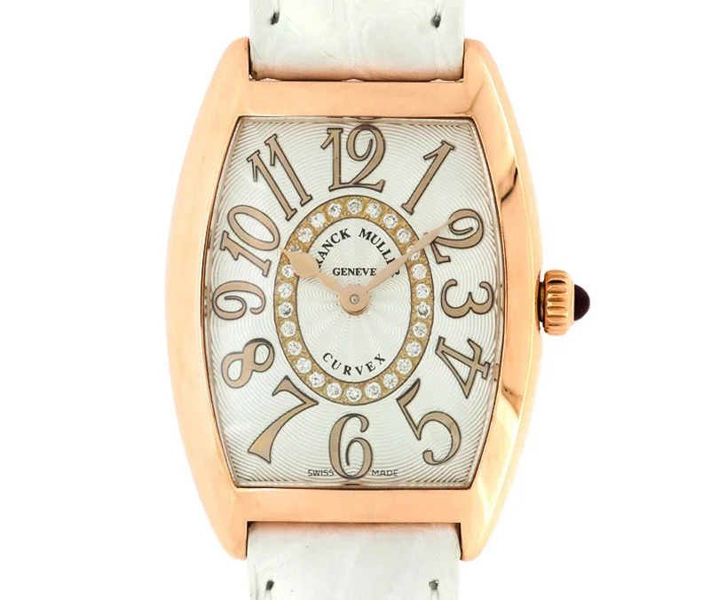 まず外観から受ける印象は、圧倒的な華やかさと存在感だ。フランク ミュラーを象徴するトノーカーベックスケースは、単なる曲線美ではなく、人間の腕の形状に寄り添う立体構造を持っている。Ref.1752BQZは比較的小ぶりなサイズ感でありながら、ケースサイドから文字盤にかけての造形が非常に豊かで、数字以上の存在感を放つ。腕に載せた瞬間、「これは普通の時計ではない」という感覚が直感的に伝わってくる。