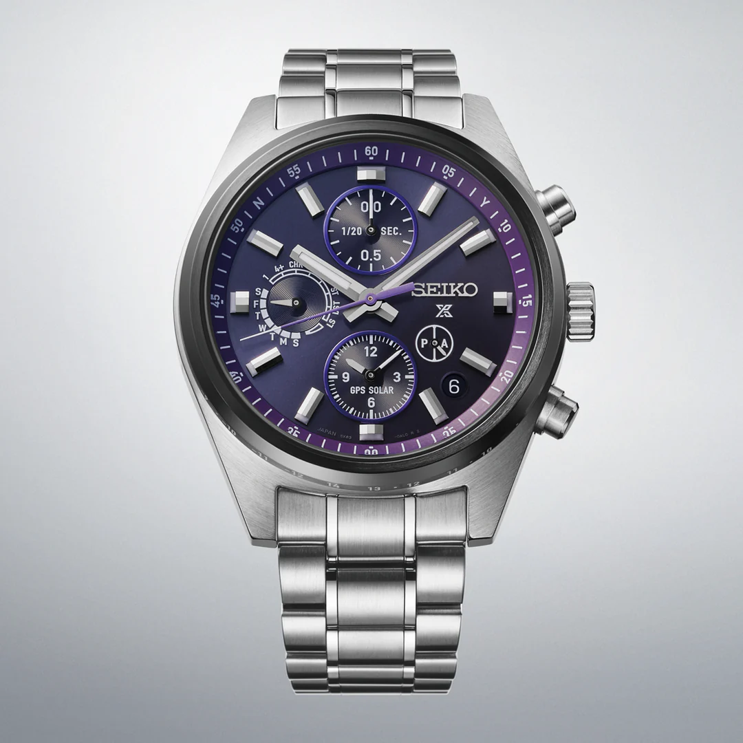 このモデル最大の特徴は、やはりGPSソーラークロノグラフムーブメント「キャリバー5X83」にある。衛星電波による自動時刻修正は、日常使いにおいて想像以上に快適で、時間合わせという行為そのものを意識しなくなる。海外に出た際も、ボタン操作ひとつで現地時刻に切り替わるため、移動が多い人ほどその恩恵を実感できる。クロノグラフ作動時の針の動きも非常に滑らかで、クオーツでありながら機械式に近い満足感がある。