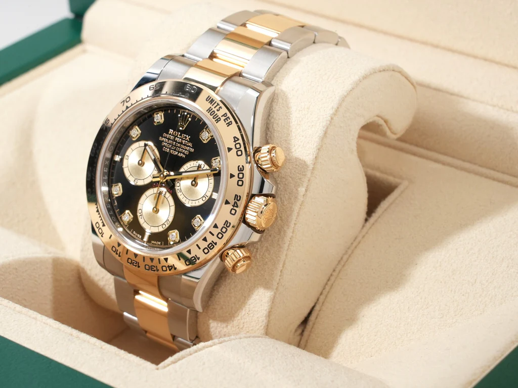 ロレックス デイトナ ブライトブラック&ゴールデン8Pダイヤ Ref.126503Gは、スポーツクロノグラフとしての力強さと、ラグジュアリーウォッチとしての華やかさを高い次元で両立させた一本であり、日常で使い続けることでその完成度をより深く理解できる時計である。