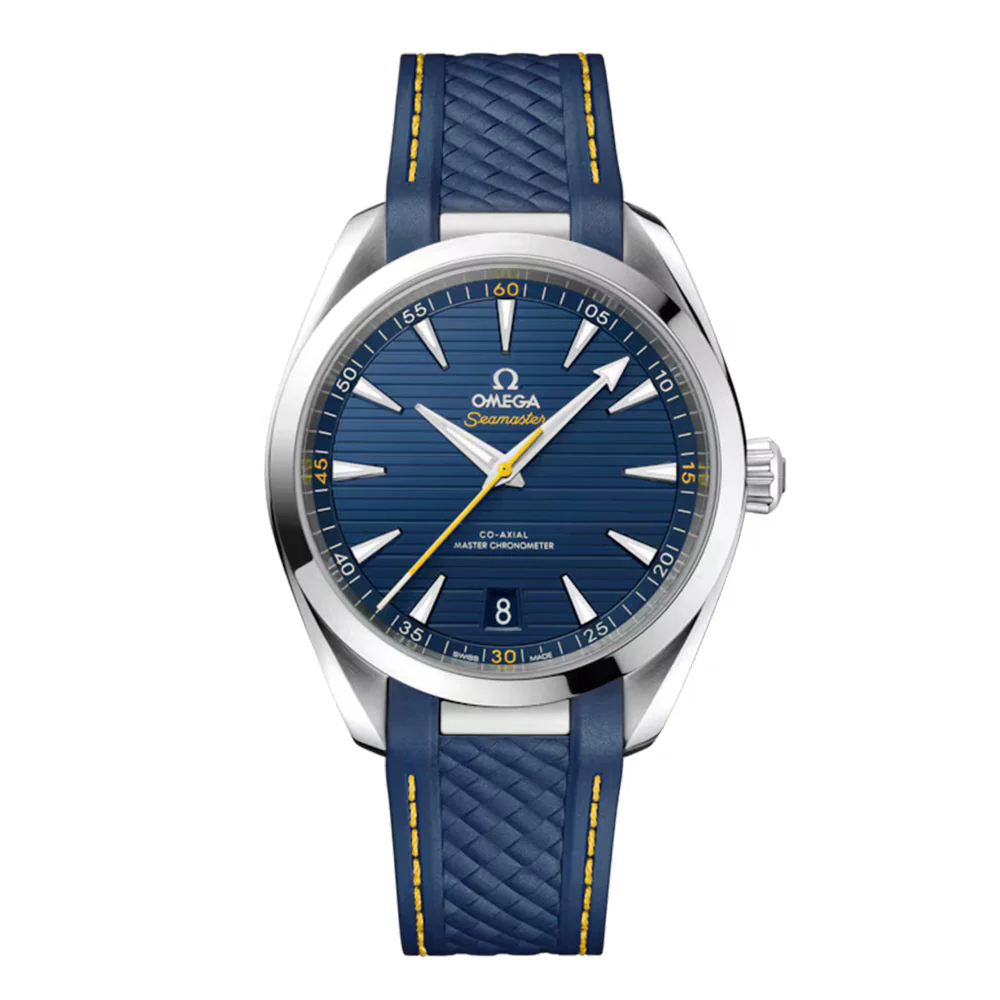 アクアテラは、ダイヤルのデザインに横ストライプ(チークパターン)を配し、シンプルながら立体感のある表情を見せる。秒針やインデックスの処理も丁寧で、時間の読み取りやすさと高い視認性を同時に満たしている。オメガ独自のコーアクシャル脱進機は摩擦を低減し、長期的な精度維持と耐久性の向上を実現する。