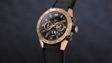 ダイヤルはブラックが採用されており、エバーローズゴールドとの相性が非常に良い。ブラックの引き締まった印象に、ゴールドの針とインデックスが映え、視認性と高級感を両立している。クロマライト夜光は暗所でもはっきりと発光し、実用時計としての基本性能も抜かりない。昼と夜で表情が変わる点も、所有欲を満たしてくれる要素の一つだ。