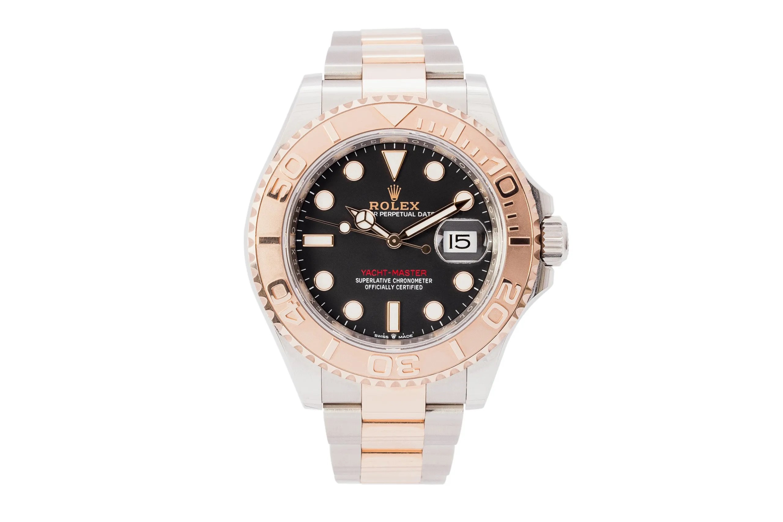 ロレックス ヨットマスター40 Ref.126621 は、スポーツウォッチでありながらラグジュアリーの要素を強く感じさせる、非常に完成度の高い一本である。ステンレススチールとエバーローズゴールドを組み合わせたロレゾール仕様は、いわゆる派手さを狙ったものではなく、大人の余裕や経験値を自然に表現するための素材使いだと感じられる。実際に腕に着けてみると、ゴールドの主張は想像以上に穏やかで、落ち着いた温かみが全体を包み込むような印象を受ける。