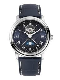 まず最大の特徴は、やはりハートビートと呼ばれるオープンハートの意匠だろう。12時位置に配された丸い開口部からは、テンプが規則正しく振動する様子が見える。これが単なる装飾にとどまらず、「今この瞬間も時計が生きて動いている」という実感を常に与えてくれる。時間を確認するために腕を見るたび、わずかに揺れるテンプの動きが視界に入り、自然と機械式時計ならではの情緒を味わうことになる。この感覚は、クオーツ時計では決して得られないものだ。