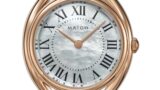 マザー・オブ・パールの文字盤は、光を受けるたびに微妙に表情を変え、時刻を確認するという行為そのものを少し豊かなものにしてくれる。白一色ではない奥行きのある色調は、見る側の気持ちを穏やかにし、慌ただしい時間の中にわずかな余白を生み出す。針のデザインも過剰な装飾を排し、クラシックでありながら軽やかさを感じさせる点が好ましい。