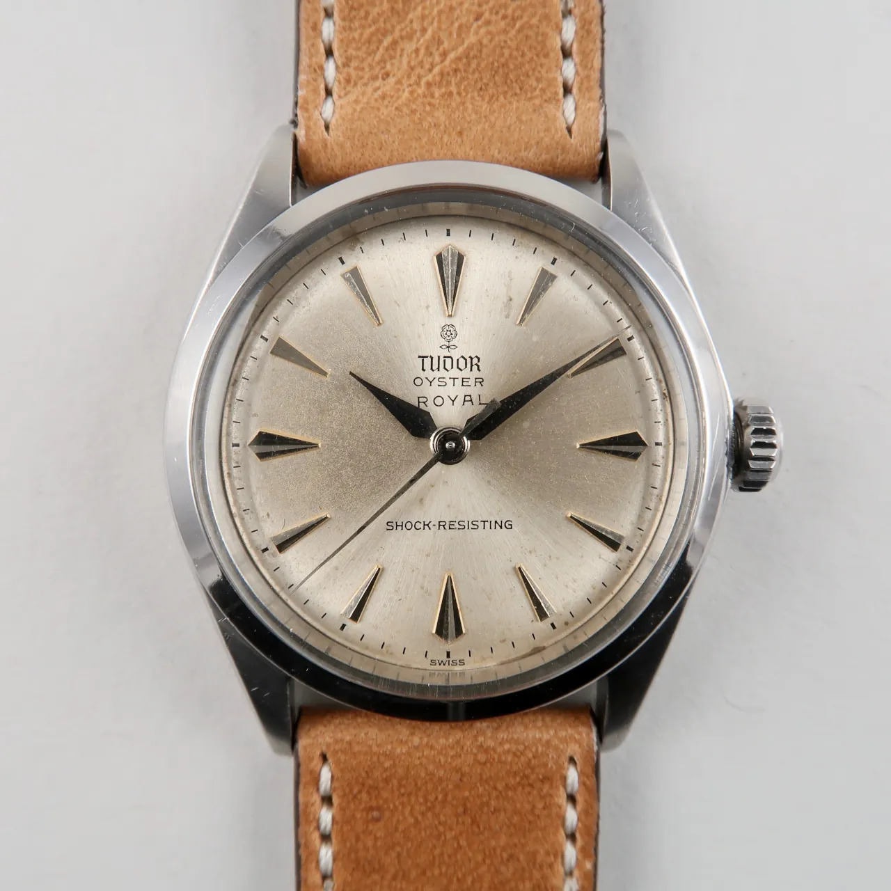 Ref.7934は、1950年代後半から1960年代初頭にかけて製造されたとされるモデルで、チューダーの中でも比較的クラシカルな雰囲気を色濃く残している。ロレックスのオイスターケースをベースにしながらも、チューダー独自の方向性がはっきりと表れており、実用性と品の良さが絶妙なバランスで共存している点が印象的だ。