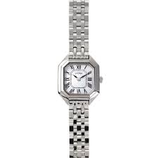このモデル最大の特徴は、端正なスクエアケースである。丸型が主流の中で、スクエアケースはそれだけで個性を放つが、このCARREは決して奇をてらわない。角の処理は柔らかく、直線と曲線のバランスが非常に良いため、腕に乗せたときの印象は驚くほど自然だ。シルバーケースは過度な鏡面仕上げではなく、落ち着いた輝きを持ち、光の当たり方によって表情を変える。その控えめな質感が、時計全体に上品さを与えている。