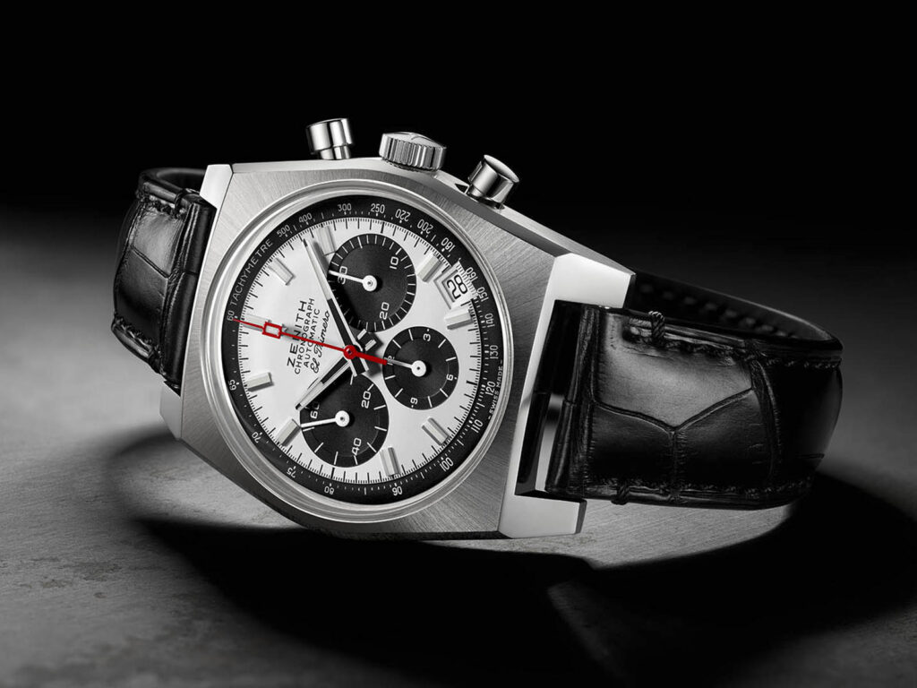 ゼニス クロノマスター リバイバル A384 Ref.03.A384.400/21.C815は、機械式クロノグラフの原点的魅力と現代的な実用性を高い次元で融合させた一本である。1969年に登場したオリジナルモデルの意匠を忠実に再現しながらも、現代の技術によって精度や信頼性が大きく向上しており、単なる復刻に留まらない完成度を感じさせる。