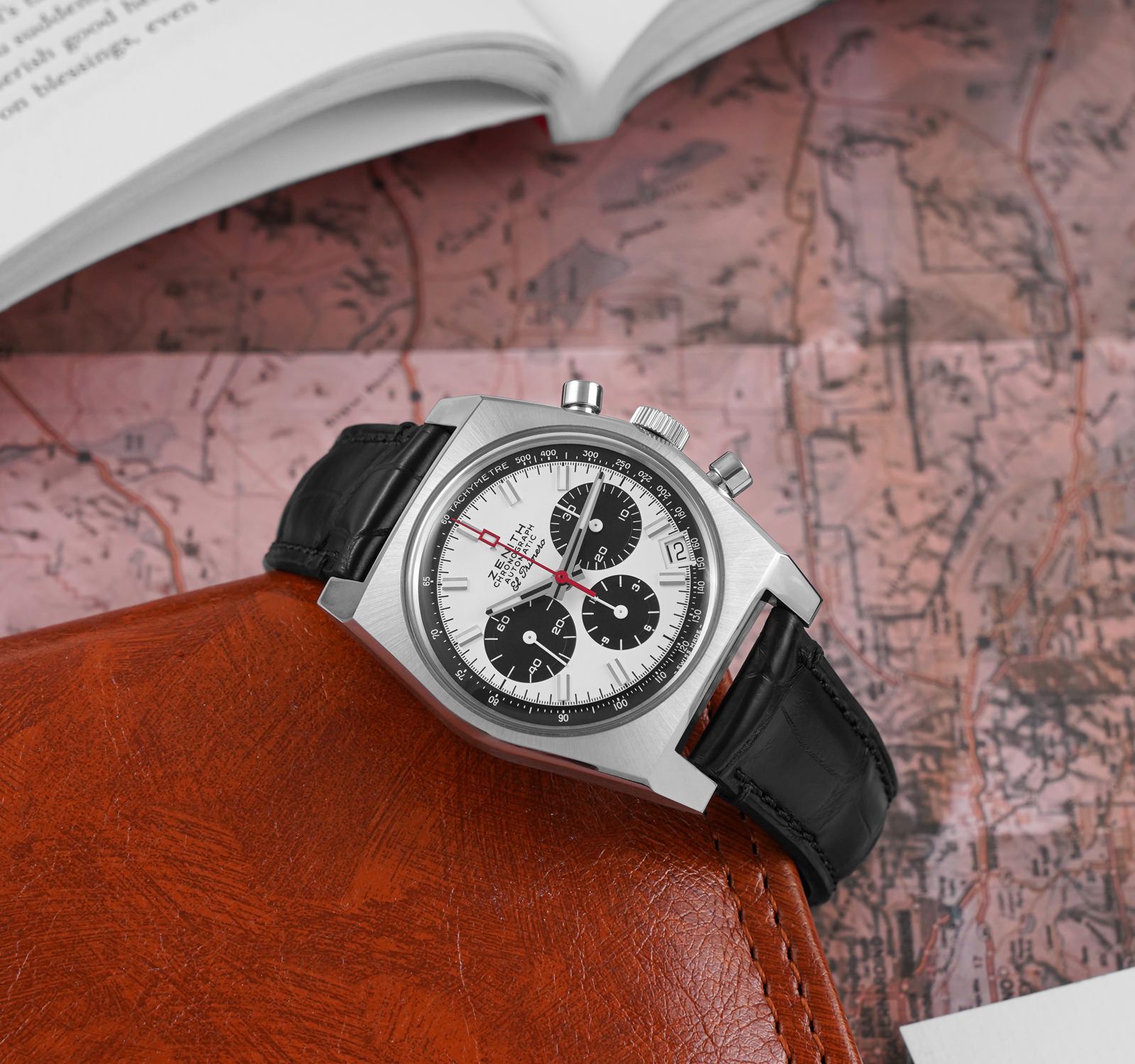 搭載されているエル・プリメロムーブメントは、毎時36,000振動というハイビートならではの滑らかな秒針の動きが魅力である。クロノグラフ操作時の節度ある感触は、機械を扱っているという実感を確かに与えてくれる。日常的に使っても精度が安定しており、信頼できる道具としての安心感がある。