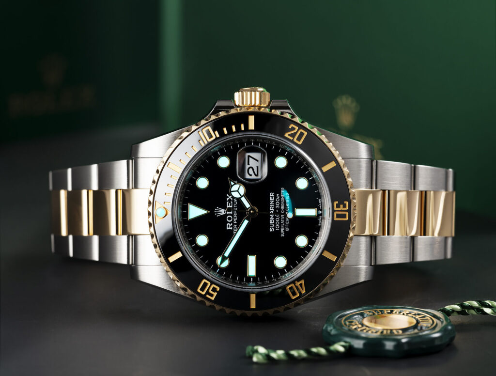 ロレックス サブマリーナ デイト Ref.126613LNは、サブマリーナという王道モデルにラグジュアリーの要素を重ね合わせた、非常に完成度の高い一本だ。ステンレススチールと18Kイエローゴールドを組み合わせたコンビ仕様は、好みが分かれるところでもあるが、実際に使ってみるとこのモデルならではの説得力が確かに存在していることに気づかされる。単なる派手さや贅沢さではなく、「使われること」を前提に設計されたゴールド使いが、この時計の印象を大きく左右している。