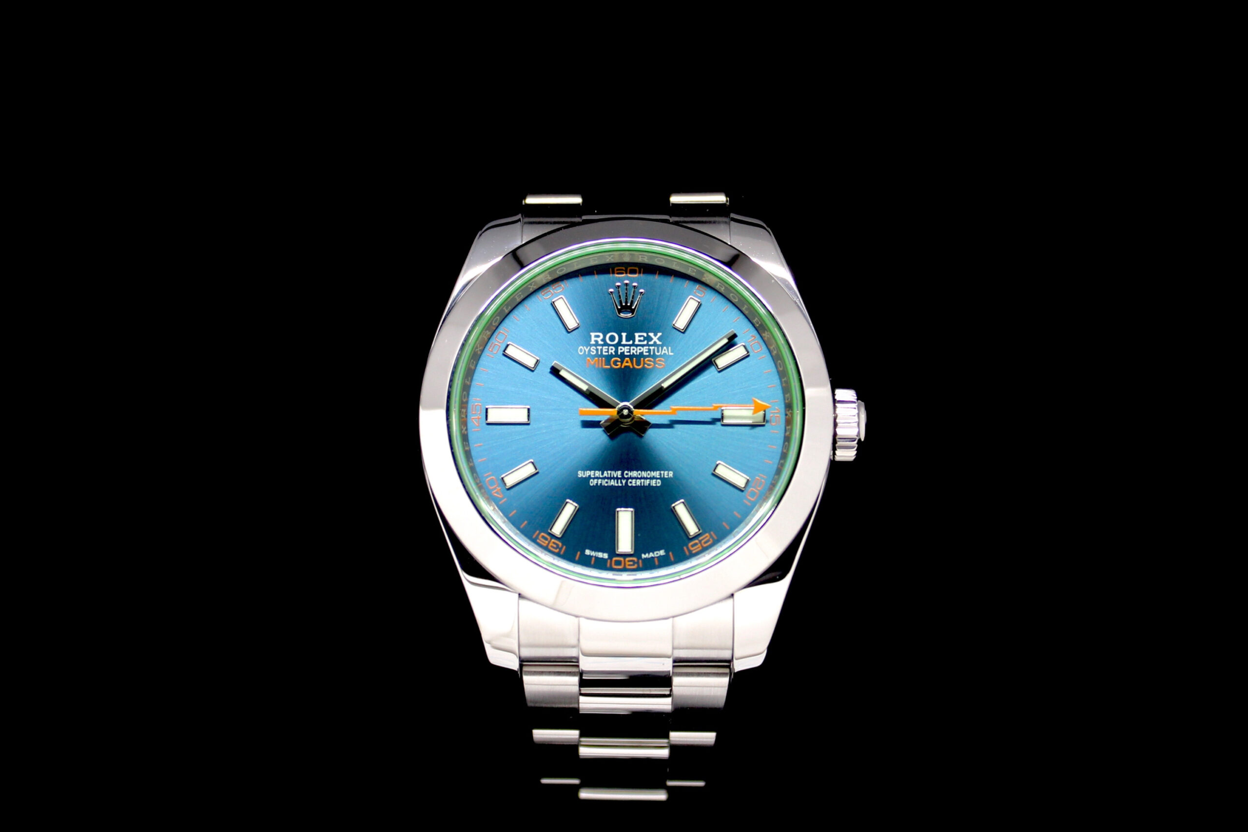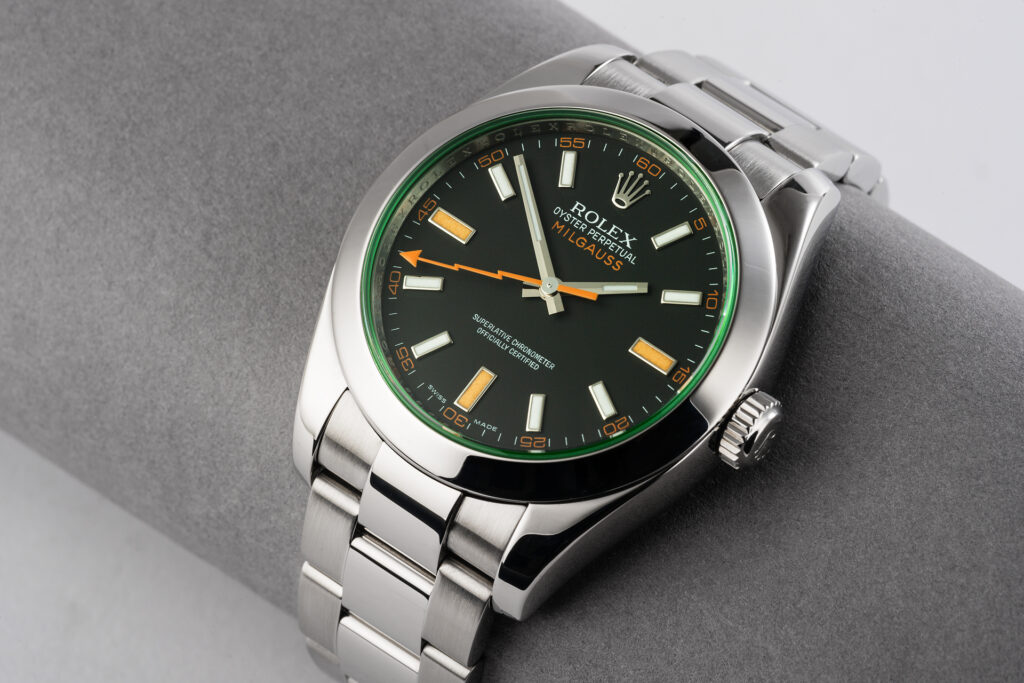 ロレックス ミルガウス Ref.116400GVは、ブランドの中でも明確な思想を持って設計された異色作であり、その個性は外観から機構に至るまで一貫している。耐磁性能という実用一点を突き詰めた結果、生まれた造形とディテールは、一般的な高級時計の文脈から少し外れた位置にあり、そこに強い魅力が宿っている。