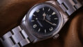 ダイヤルはシンプルでありながら、細部まで丁寧に作り込まれている。サンレイ仕上げによる繊細な光の反射は、時間帯や場所によって印象を変え、単調さを感じさせない。インデックスや針の仕上げも美しく、視認性と美観の両立が徹底されている点に、ロレックスらしい実用美を強く感じる。