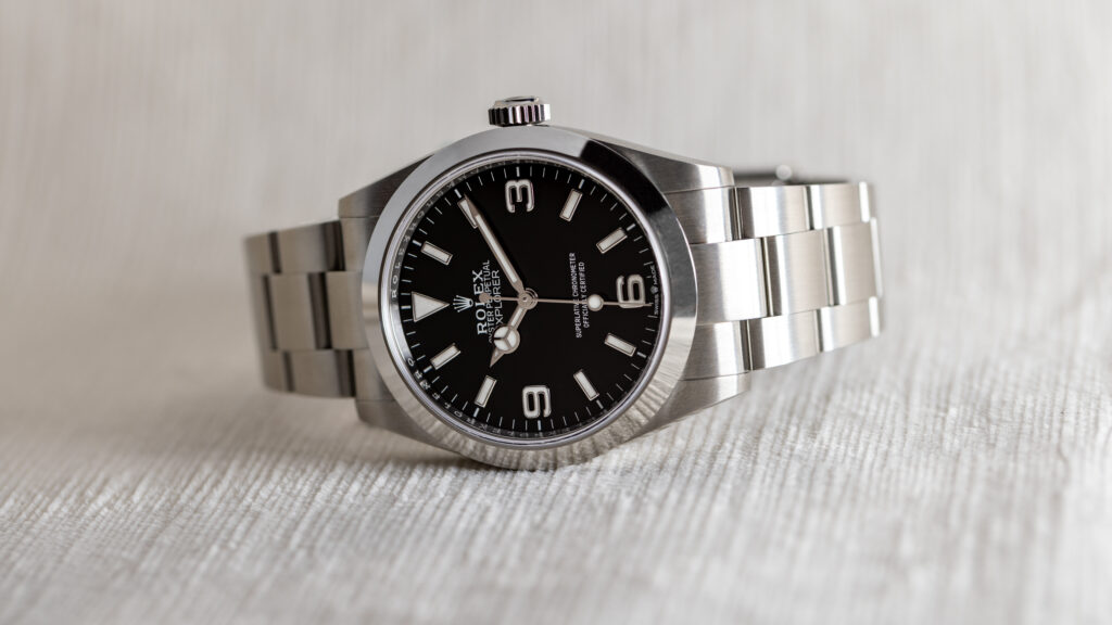 防水性能は100mで、日常生活では十分すぎるほどだ。水回りを気にして外す必要がなく、時計に行動を制限されない。この気軽さが、エクスプローラーを「特別な一本」ではなく、「毎日着ける一本」として成立させている。