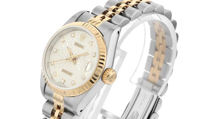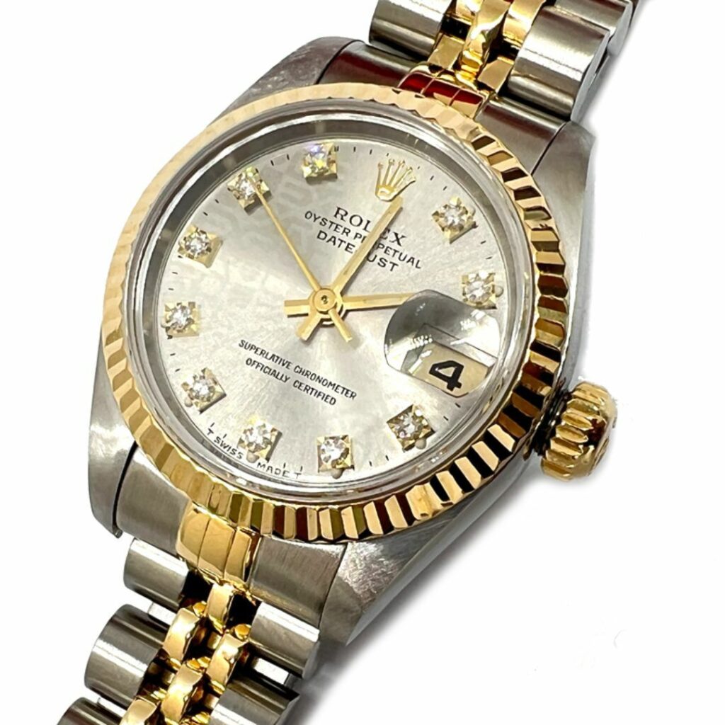 ダイヤモンドインデックスも、このモデルの印象を大きく左右する要素だ。強い輝きで目立つのではなく、光を受けたときに控えめに反射することで、時計全体に品の良さを添えている。華美になりすぎないため、年齢やライフステージが変わっても違和感なく使い続けられる点は、このRef.69173Gならではの魅力だと感じる。