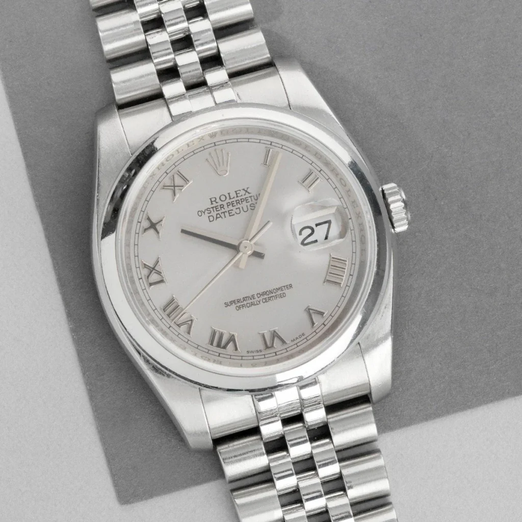 ロレックス デイトジャスト グレー/ローマ Ref.116200は、決して派手ではないが、確実に信頼できる一本である。日常の中で自然に使い続けられ、時間とともに評価が高まっていく腕時計を求める人にとって、このモデルは非常に完成度の高い選択肢である。時計に過剰な主張を求めず、長く付き合える相棒を探しているのであれば、この一本は静かに、しかし確実に期待に応えてくれる存在となるだろう。