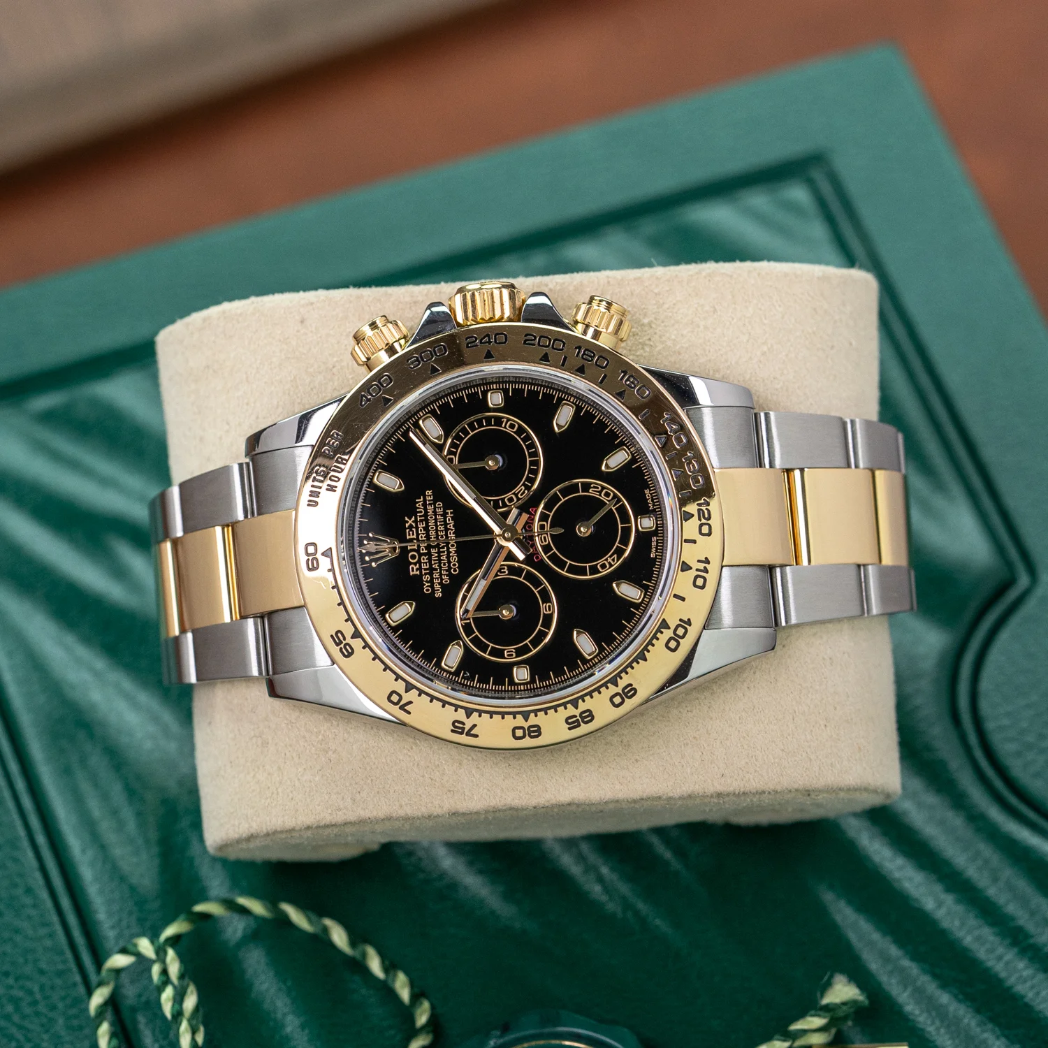 ロレックス デイトナ Ref.116503は、K18イエローゴールドとステンレススチールを組み合わせた、いわゆるコンビモデルである。この時計を語るとき、まず触れなければならないのは「派手さ」と「実用性」が同時に成立しているという点だ。デイトナというモデル自体が持つ特別性に、イエローゴールドの華やかさが加わることで、単なるスポーツクロノグラフとは異なる領域に踏み込んでいる。しかし実際に使ってみると、その印象は見た目だけで判断していた頃とは大きく変わってくる。