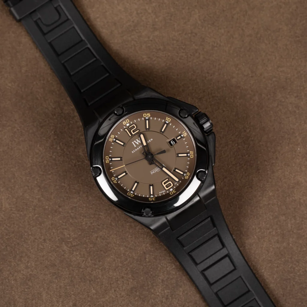 IWC インヂュニア オートマティック “AMG ブラックシリーズ・セラミック” Ref.IW322504は、腕時計という枠を超えて「工業製品としての完成度」と「感情に訴えかける存在感」を高い次元で両立させた一本だと感じる。初めて目にした瞬間から、一般的なラグジュアリーウォッチとは明らかに異なる空気をまとっている。華やかさや装飾性で魅せるのではなく、機能と思想そのものが前面に出てくる時計であり、その姿勢が非常にIWCらしい。