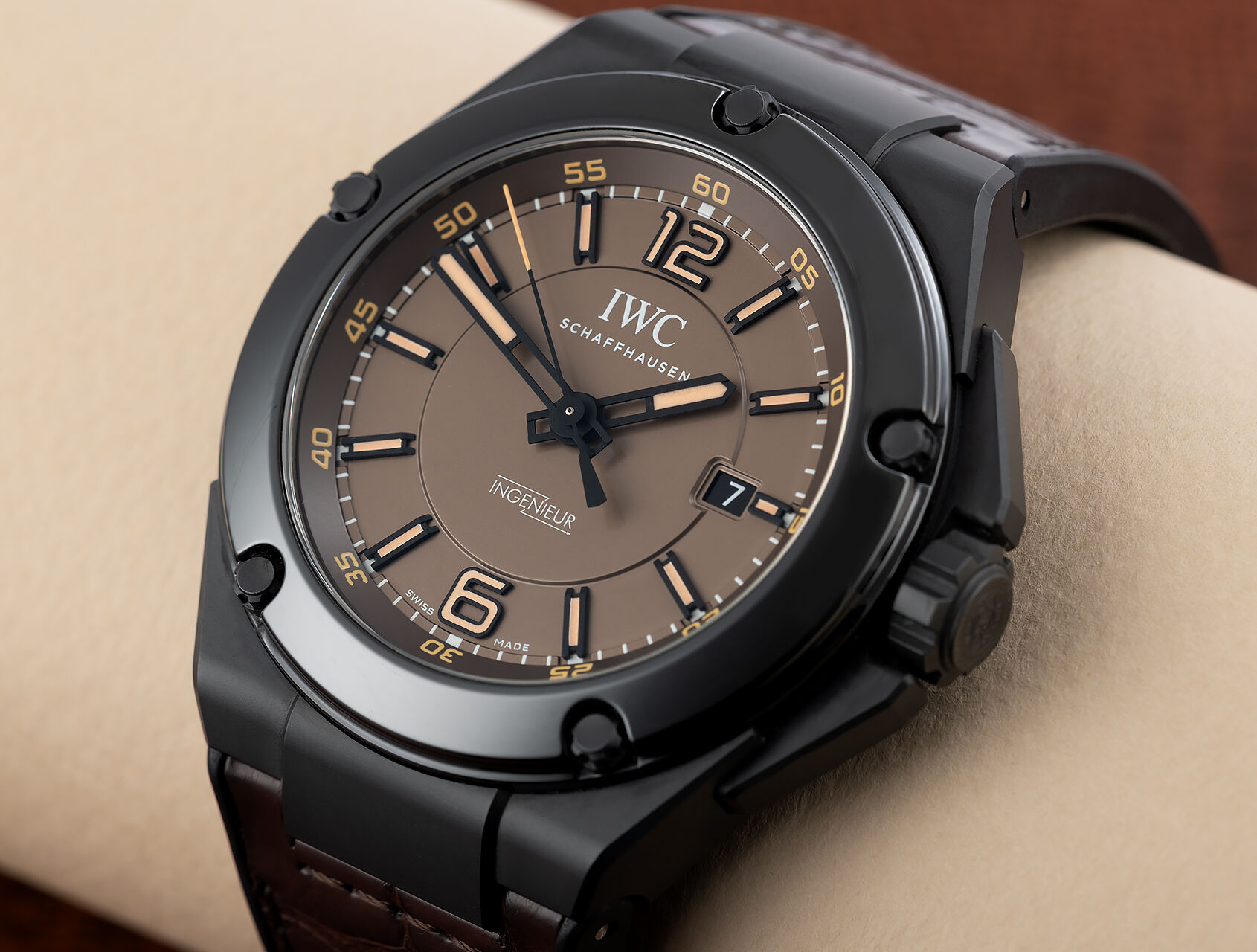 IWC インヂュニア オートマティック “AMG ブラックシリーズ・セラミック” Ref.IW322504は、腕時計を単なる装飾品ではなく、日常における「信頼できる相棒」として捉えたい人に強く訴えかけてくる一本だ。初めて腕に乗せた瞬間から、一般的な高級時計とは異なる感覚がある。きらびやかさや分かりやすい高級感ではなく、静かで理性的な存在感があり、こちらの意識を自然と引き締めてくる。