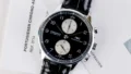 まず外観から受ける第一印象は「整っている」という言葉だ。黒い文字盤は深い艶を持ちながら主張しすぎない色合いで、光の当たり方によっては青みすら感じさせるニュアンスのある仕上がりだ。インデックスや針はシンプルなアラビア数字とリーフ針の組み合わせで、視認性が極めて高い。時間を瞬時に把握するという基本を最優先に置きながら、ただ情報を並べただけではない「美しさ」を確保している点が素晴らしい。