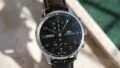 このモデルを腕に着けてまず感じるのは、視認性の良さが生活のリズムを邪魔しないという点だ。ブラックダイヤルに白いアラビア数字、太くしっかりとした針という組み合わせは、時間を確認する行為を一瞬で終わらせてくれる。忙しい朝や移動中など、余計な意識を割かずに時刻を把握できることは、想像以上にストレスを軽減してくれる。クロノグラフでありながら文字盤が整理されており、情報量の多さを感じさせない点も、日常使いに向いている理由の一つだ。