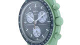 ステンレススティール製のケースは堅牢性に優れ、鏡面仕上げとサテン仕上げの組み合わせが上品な光沢を生む。ラグの細やかなラインとケースの厚みは、手首に自然に収まる設計となっており、操作性の面でもリューズの巻き上げ感や時刻調整の滑らかさが印象的である。ムーブメントにはクロノメーター認定を受けたオメガ自社製キャリバーを搭載しており、高精度と耐久性を兼ね備えている。手巻きや自動巻きの操作時には機械の精密さを体感でき、時計としての所有感が非常に高い。