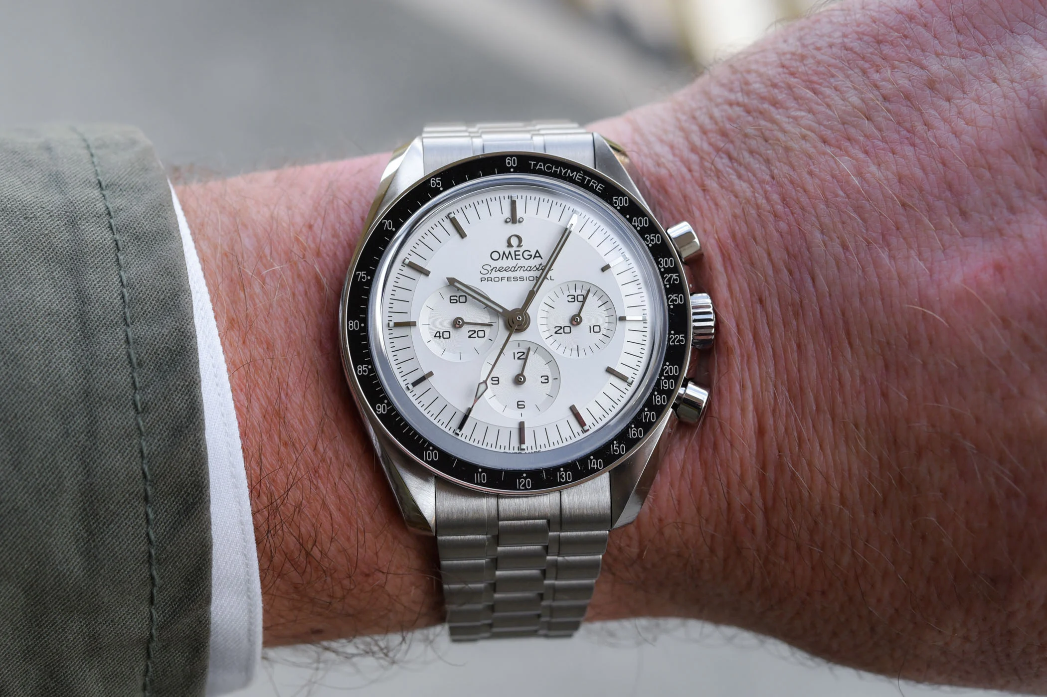 さらに、歴史的背景やブランドとしての信頼性も、この時計の価値を高める要素だ。1969年のアポロ計画で月面に同行したスピードマスターの血筋を受け継ぎつつ、最新技術でアップデートされたマスタークロノメーター仕様は、伝統と革新が見事に融合している。所有しているだけで、時計そのものが持つ物語性や哲学を日常の中で感じることができるのも、このモデルならではの魅力である。