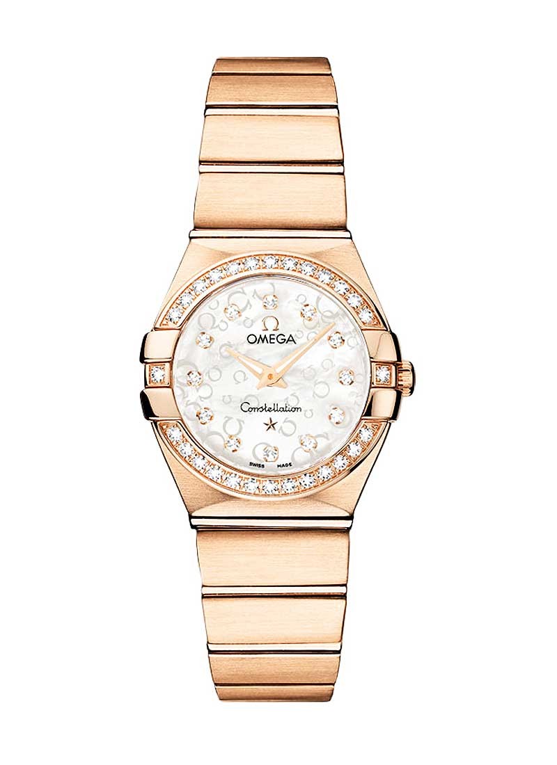オメガ コンステレーション マザーオブパールダイヤル Ref.123.55.24.60.55.015 は、女性らしい優雅さと高級感を兼ね備えたタイムピースである。コンステレーションシリーズは1952年に誕生して以来、精度と美しさを両立させるオメガの象徴として愛されており、このモデルはその伝統を現代的にアレンジした一本である。ケースはステンレススチール製で直径24mmと小ぶりながら、ラグやベゼルの曲線が繊細にデザインされており、女性の手首に自然に馴染む。ベゼルにはダイヤモンドがセッティングされており、光を受けるたびに上品にきらめく点が大きな魅力である。