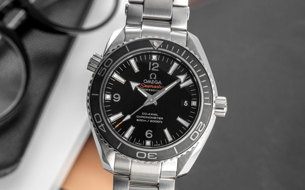 オメガ「シーマスター プラネットオーシャン 600M Ref.232.30.42.21.01.001」は、ただのダイバーズウォッチに留まらず、日常の中で自然に存在感を放つ時計である。ステンレススティール製の42mmケースは腕に収まりやすく、重厚でありながら過剰に大きくはないため、装着していても違和感が少ない。ブラックの文字盤とセラミック製ベゼルは落ち着きがあり、シンプルなデザインでありながら視線を引きつける存在感がある。この時計を初めて手にしたとき、その重みや質感から生まれる安心感に、少し驚いたのを覚えている。
