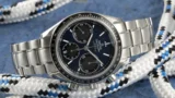 クロノグラフ機能に付きもののサブダイヤルはバランスよく配置されており、動的なレイアウトが文字盤に深みを与えている。ブルーの地色とシルバーインデックスのコントラストは視認性だけでなく、視覚的な心地よさを追求していると感じられる。日常的な時間の確認だけでなく、簡単な計測にも使えるため、スポーティな用途にも対応可能だ。