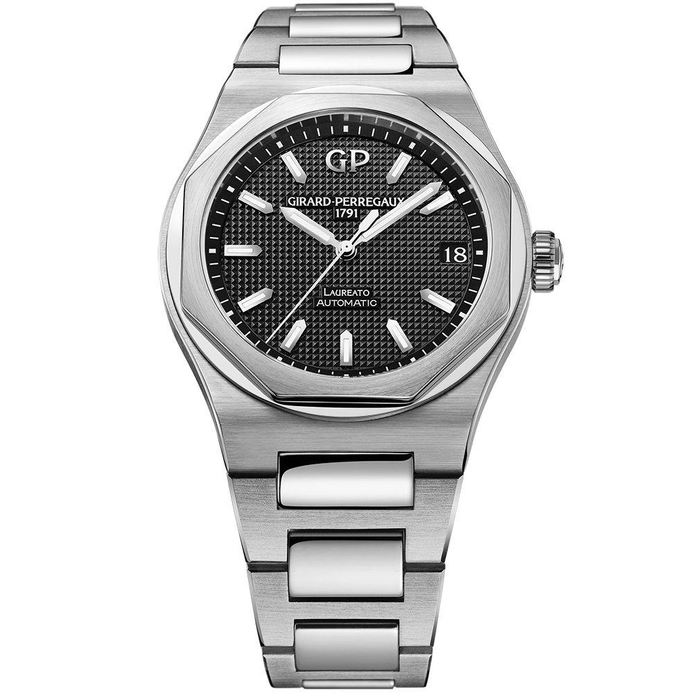 ジラール・ペルゴ ロレアート ブラック文字盤 Ref.81010-11-634-11Aを手にしてからの時間は、単なる高級時計の所有体験というより、日々の生活のリズムに静かに寄り添う道具を得た、という感覚に近い。最初に箱から取り出した瞬間、ラグジュアリースポーツウォッチに分類されるモデルらしい堂々とした存在感がある一方で、過剰に主張しすぎない均整の取れた佇まいが目に入る。八角形のベゼルと円形ケースの組み合わせは写真で見るよりも自然で、実際に腕に乗せるとケースとブレスレットが一体化したように流れ、42mmというサイズ表記から想像するほどの大きさや重さを感じさせない。