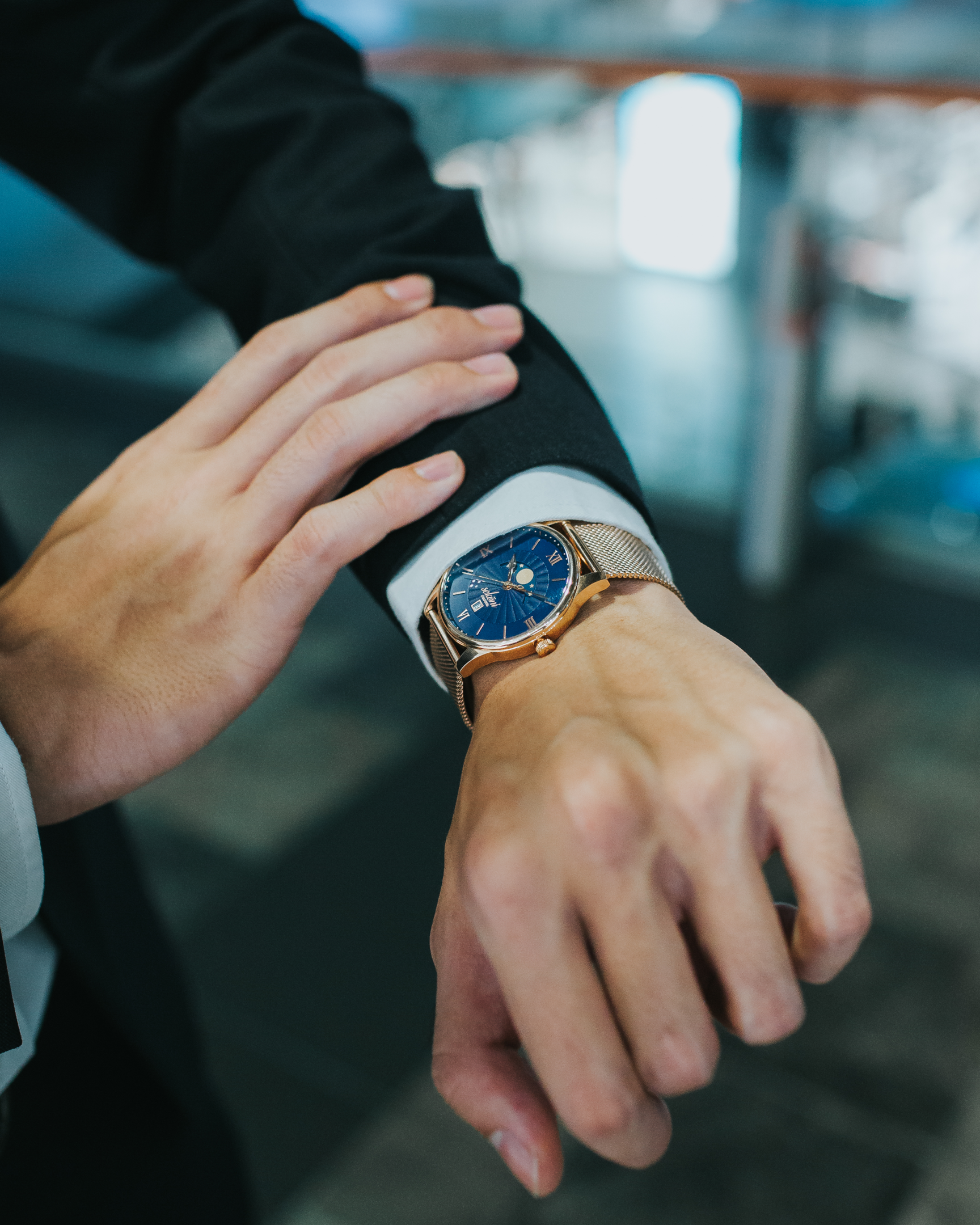 さらに、手首の形状も考慮する必要があります。丸みのある手首の場合、ケース径だけでなくラグの曲線や厚みが適切に調整された時計を選ぶことで、より自然に腕にフィットします。反対に角ばった手首の場合は、直線的なラグや厚みのあるケースを選ぶと、腕全体に統一感を与えつつ、力強い印象を作ることができます。こうした調整を無視して見た目だけで選ぶと、時計は装着者の手首に馴染まず、長時間の使用で違和感や疲れを感じやすくなる場合があります。