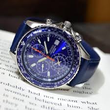 セイコーのパイロットクロノグラフ、Ref.SND255P1は、腕時計としての機能性とデザインの両立を見事に実現したモデルである。この時計を初めて手に取ったとき、まず感じたのはその重厚感と堅牢さである。ケースはステンレススチール製で、重量感がありながらも腕に馴染む絶妙なバランスで作られているため、長時間着用しても不快感は少ない。青の文字盤に白いインデックスと針が配置され、視認性が非常に高い点も大きな特徴である。特にパイロットウォッチとしての性格を強く意識したデザインであり、瞬時に時間を読み取ることができるのは、実用面において大きな利点である。
