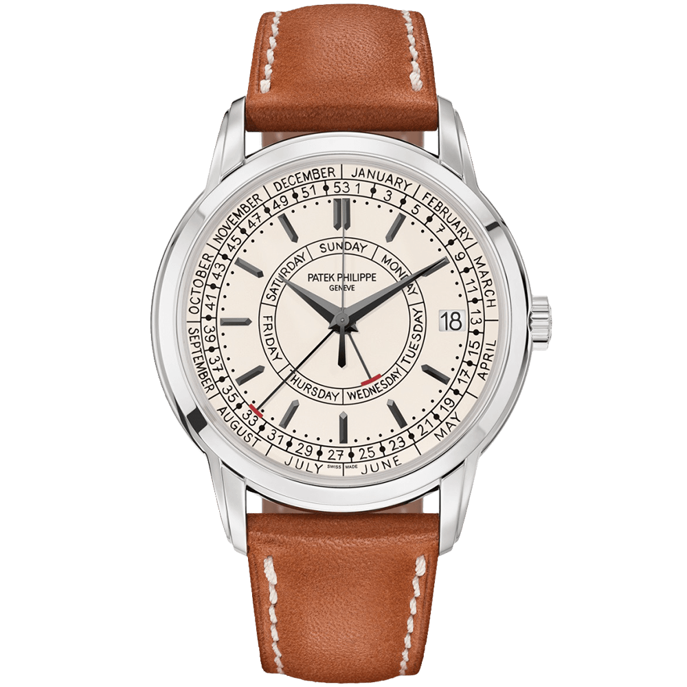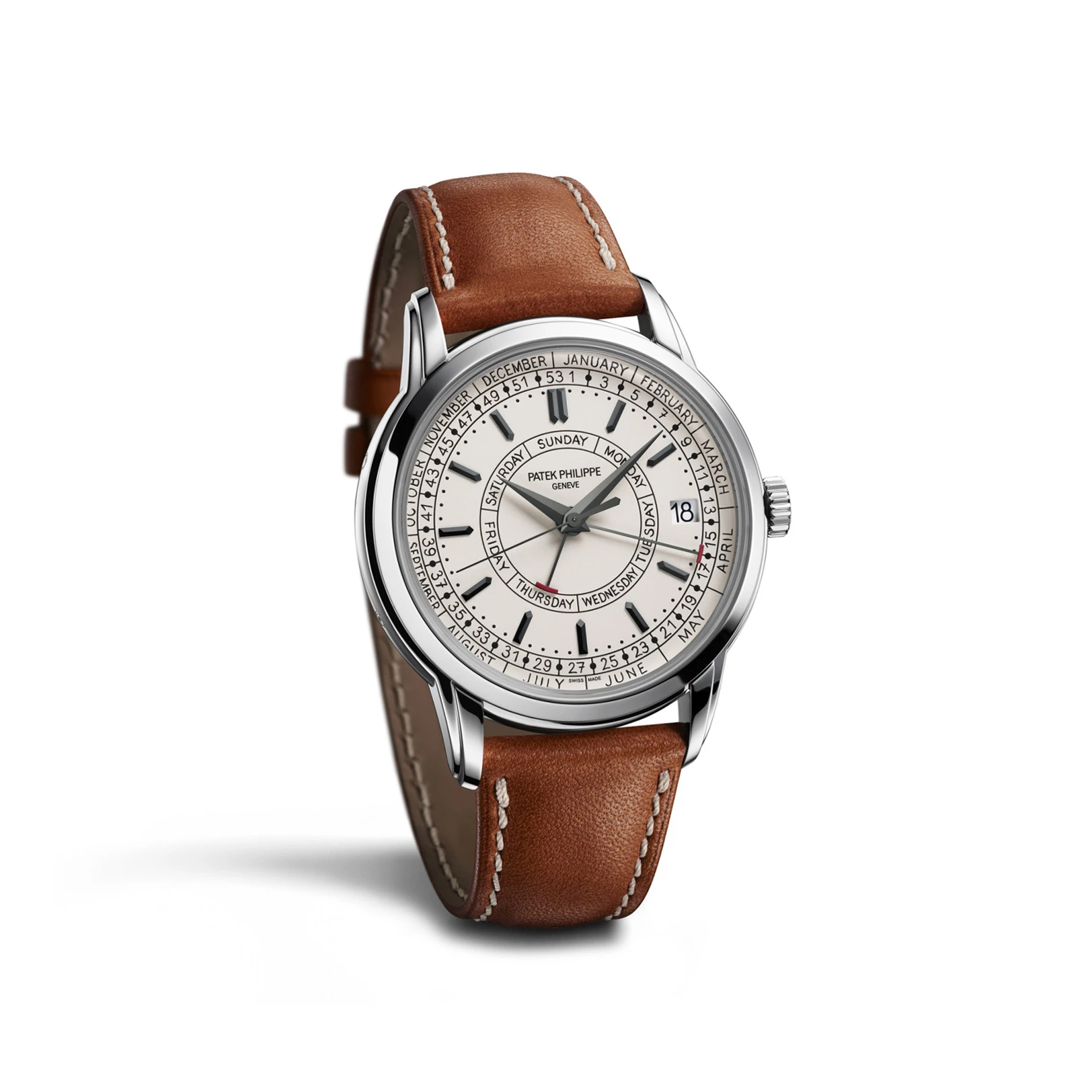 パテック・フィリップ カラトラバ ウィークリー・カレンダー Ref.5212A‑001 は、伝統を誇るスイス高級時計ブランド、パテック フィリップが2019年に発表したコンプリケーションモデルで、ブランドのアイコン「カラトラバ」コレクションに週番号(Week number)表示という珍しい機能を加えた時計である。曜日・日付・週番号・月をまとめて表示するこの機能は、日常生活の中で視覚的かつ直感的に時間の流れを把握させてくれ、デスクワークでもプロジェクト管理でも活躍する設計である。通常のカレンダー表示のみならず、1年の「今が何週目か」を把握できるという点は、コンプリケーションとしてユニークであり、パテック フィリップの技術力の高さを象徴するものでもある。