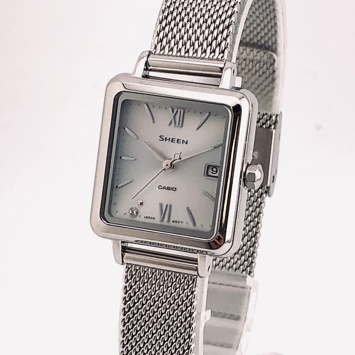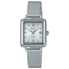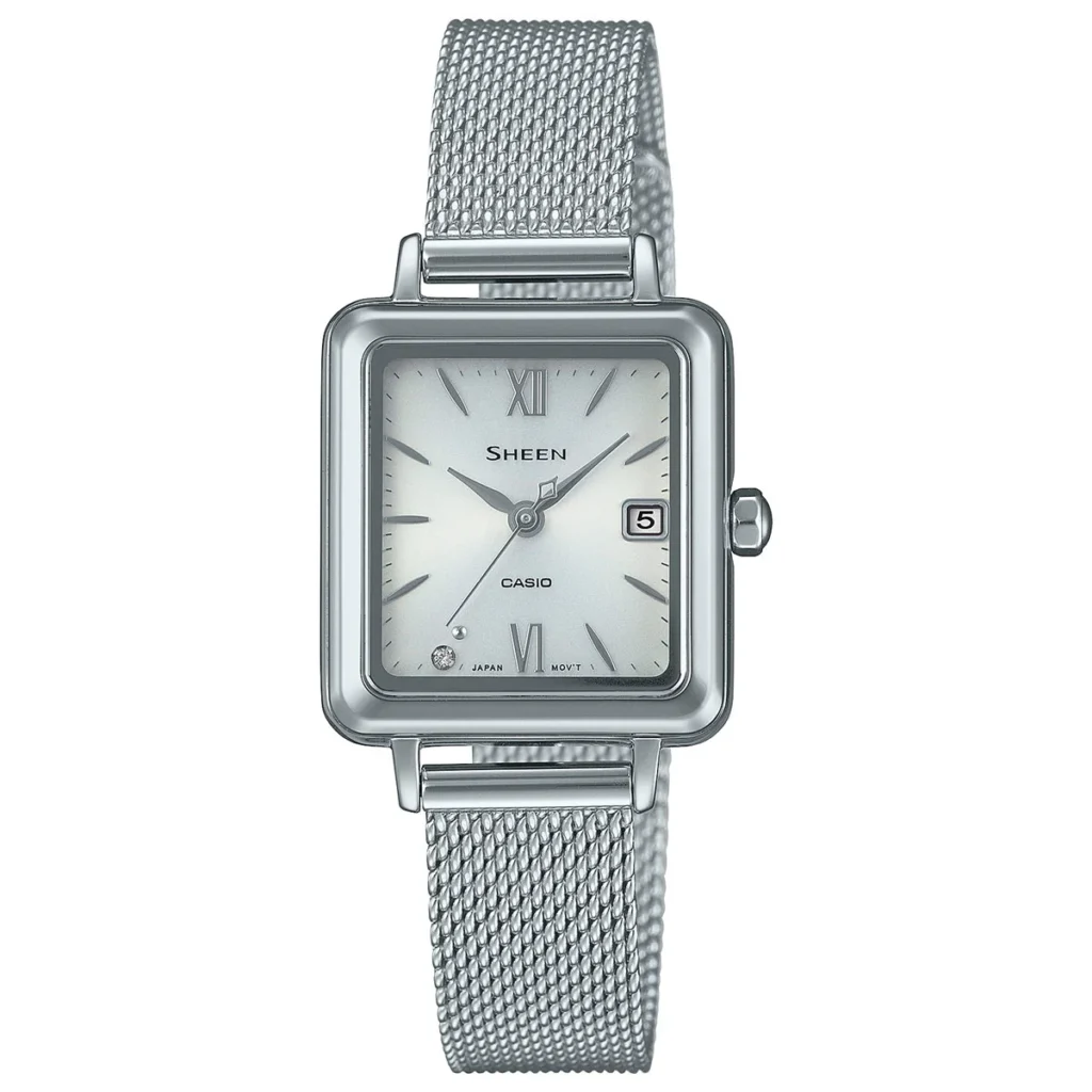 さらに、この時計はデザイン面においても非常に優れており、シンプルながら上品なスクエアフェイスは、カジュアルな服装にもフォーマルな服装にも自然に馴染み、どんな場面でも浮かない存在感を放つ。また、メッシュバンドとステンレスケースの組み合わせは、軽快さと丈夫さを両立させており、手首に装着したときの程よいフィット感は、まるで自分専用に作られたかのような安心感をもたらす。この感覚は、時計にありがちな「着けていると疲れる」「手首で滑る」という不快感が一切ないため、日常生活や仕事、ちょっとした外出にも自然に取り入れやすい。