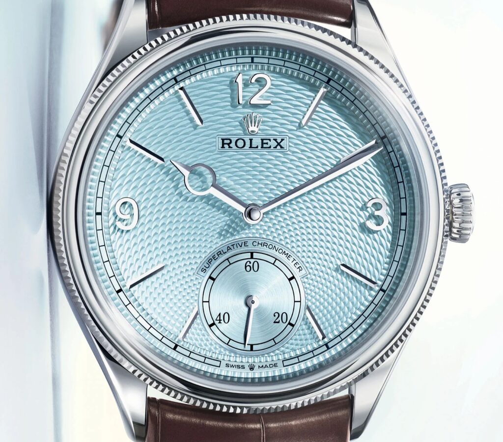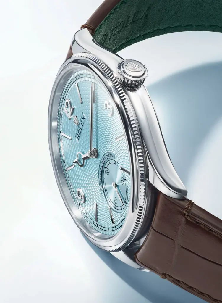 ロレックスのフラッグシップとも呼べるデイトナにも使用されているアイスブルーとプラチナの組み合わせがここにきてパーペチュアル1908で実現することになる。